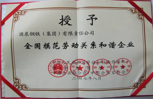 全國模范勞動關(guān)系和諧企業(yè)