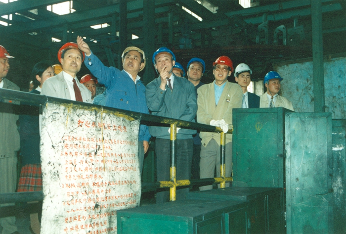 吳邦國(guó)副總理在廠區(qū)視察時(shí),同第一線工人親切握手、問(wèn)候。應(yīng)酒鋼公司領(lǐng)導(dǎo)的邀請(qǐng),吳邦國(guó)在酒鋼簽名留念。